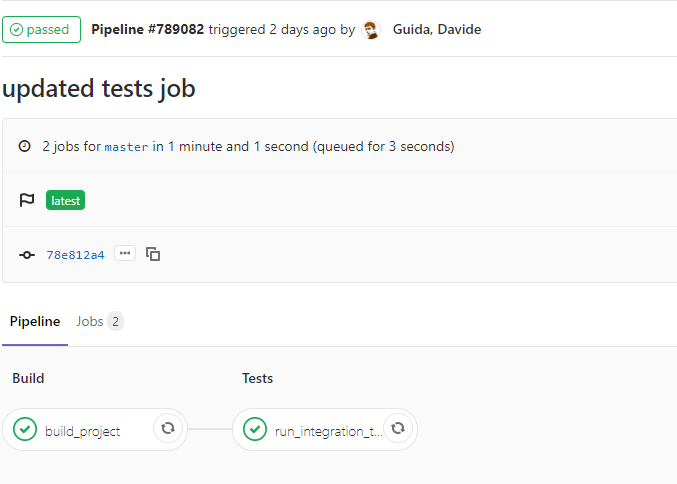 Now that we’ve defined the integration tests, let’s take a look at the CI pipeline. In the .gitlab-ci.yml file you can find two jobs, “build_project” and “run_integration_tests“.