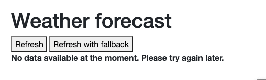 As you’ll see from the code, I have simply expanded the default Weather service example. Our fallback is an empty list of WeatherForecast items, which is treated like this by the UI: